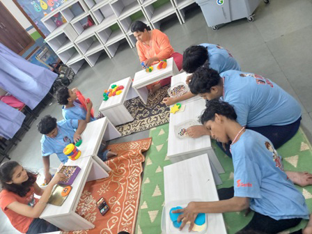 And so, as part of our ongoing commitment to inclusive education, SETU sponsored 30 specially designed study chowkis (floor-based study tables) for primary-level students with disabilities and from underprivileged backgrounds, enrolled at VSAI. These chowkis were developed keeping in mind the specific physical needs of children with motor challenges, as well as the space limitations.