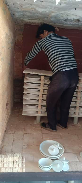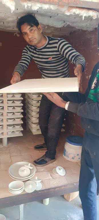 Blue pottery production requires curing of raw products at 800oC in specially designed furnaces. Large sized refractory grade tiles & stands of high quality are of utmost importance for arranging the raw pottery in the furnace. The refractory brick tiles, especially in larger sizes, are quite expensive & sometimes, non-affordable for the artisan group. In 2017, SETU had sponsored these refractory stands & tiles which proved to be very useful to the artisans. Now, after 7 years of continuous usage, the tiles were worn out & broken, resulting in reduced process efficiency, higher labor, and quality issues.
