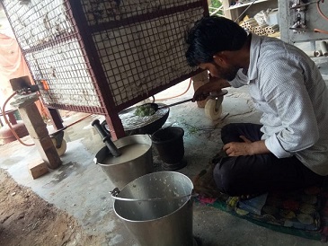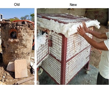 The artisans had been using an old, mud coated dilapidated furnace, fired by traditional fuel such as coal. Design & insulation were improper, resulting in wastage of heat & extra fossil fuel consumption. Generation of black smoke & coal sparks posed health & environmental risks. The amount of glaze that could be prepared was too less compared to the fuel used. Excess time and manpower were consumed. The quality of glaze produced wasn’t satisfactory due to smoke particles & inadequate temperatures, resulting in poor quality of the final products. Thus health, safety, environment & savings all were getting compromised.