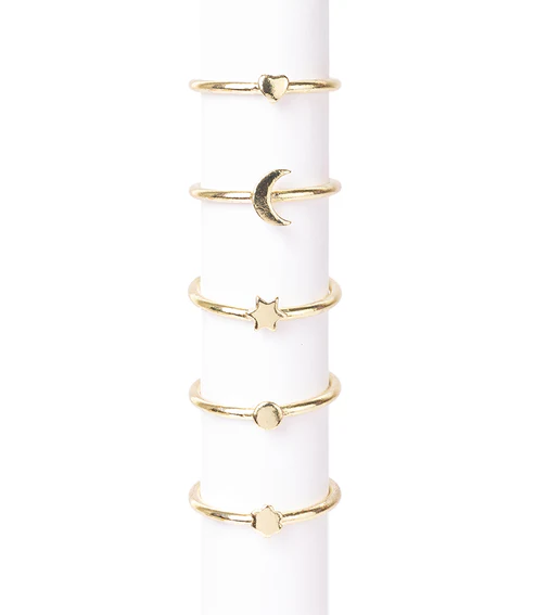 Prema Assorted Charm Stacking Rings - Gold Tone