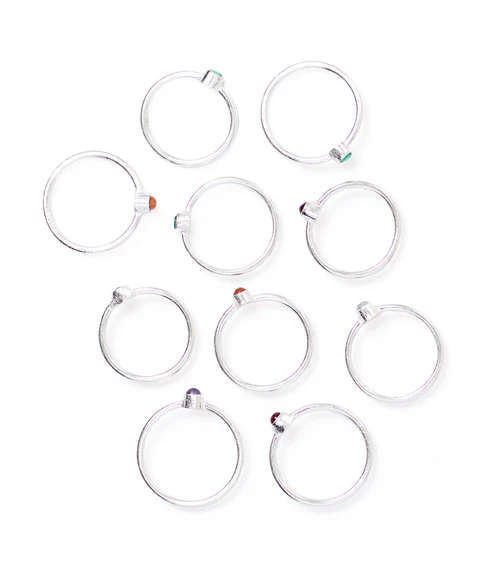 Dhera Assorted Semi-Precious Stone Stacking Rings - Silver Tone