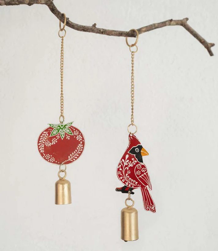 The Henna Tomato Chime combines artisan metalwork with vibrant, hand-painted detail. Featuring a tomato-shaped design with a rustic brass-colored bell and chain for hanging, this piece offers both decorative and functional appeal. Food and garden-inspired motifs are trending across the gift and home décor market, making this chime an excellent fit for garden shops, kitchen stores, gift boutiques, and museum shops.Materials: iron
