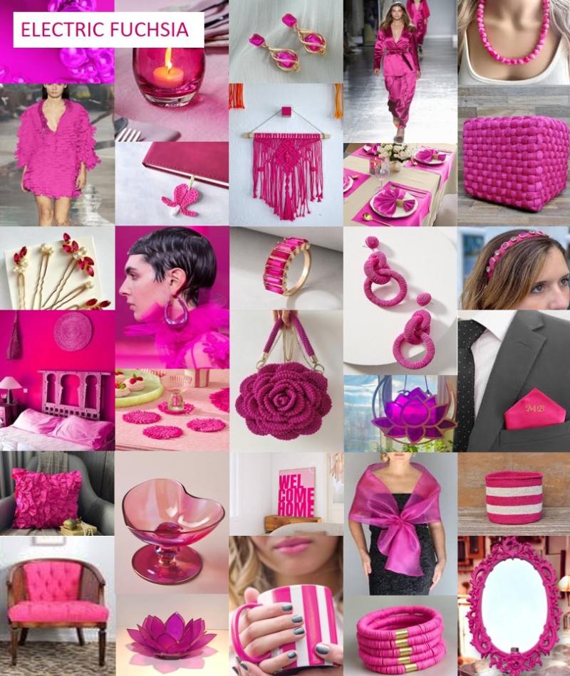 A vivid neon between pink and purple with a digital, kinetic edge. Electric Fuchsia channels rebellious resistance, escapism, and post-human creativity shaped by AI and virtual aesthetics.