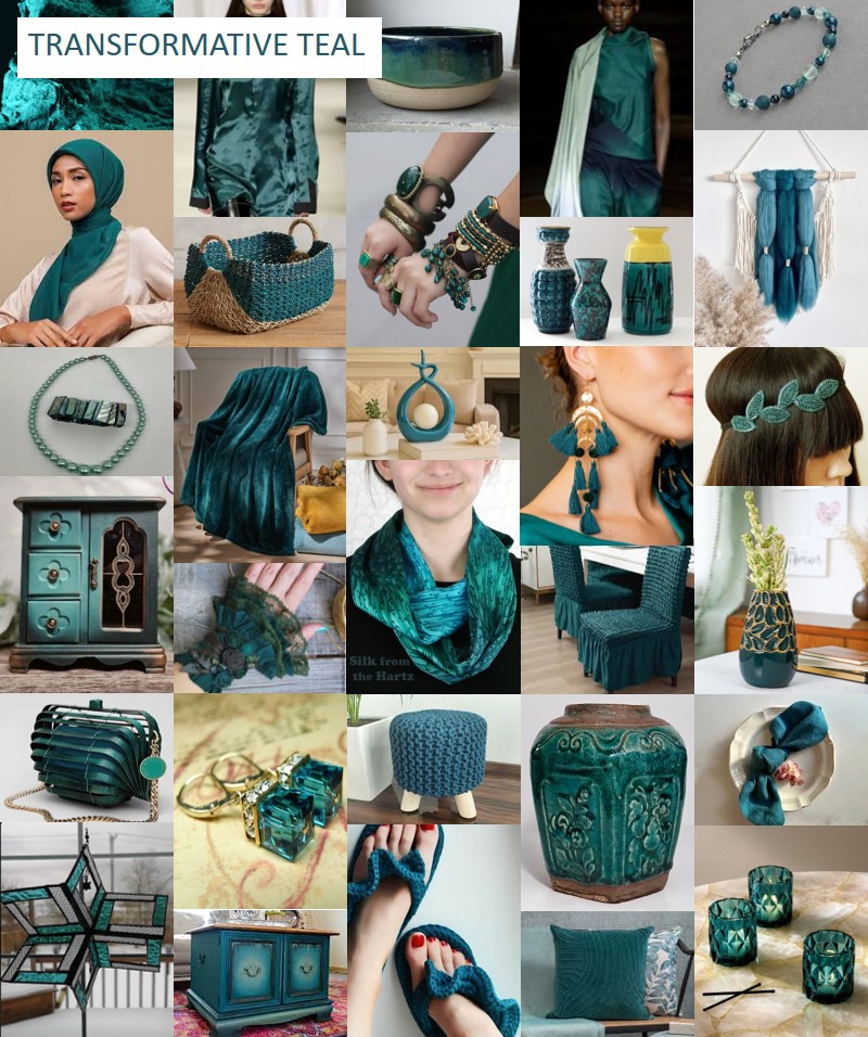 A fluid fusion of blue and green symbolizing nature’s diversity and an Earth-first mindset. Cooling, calming, and regenerative, this shade reflects resilience and collective solutions in the face of climate change.